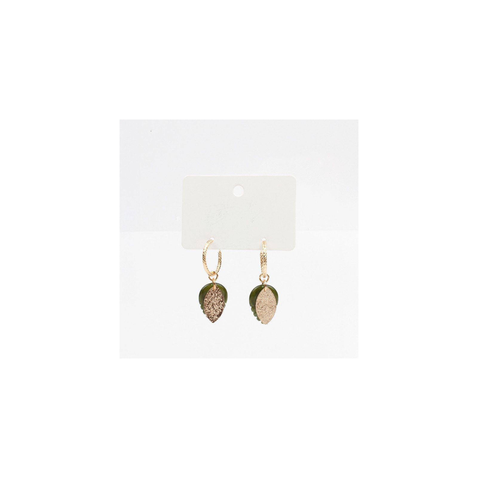 Aro Argolla de 18mm con piezas exclusivas de acrílico y doradas en forma de hojas.