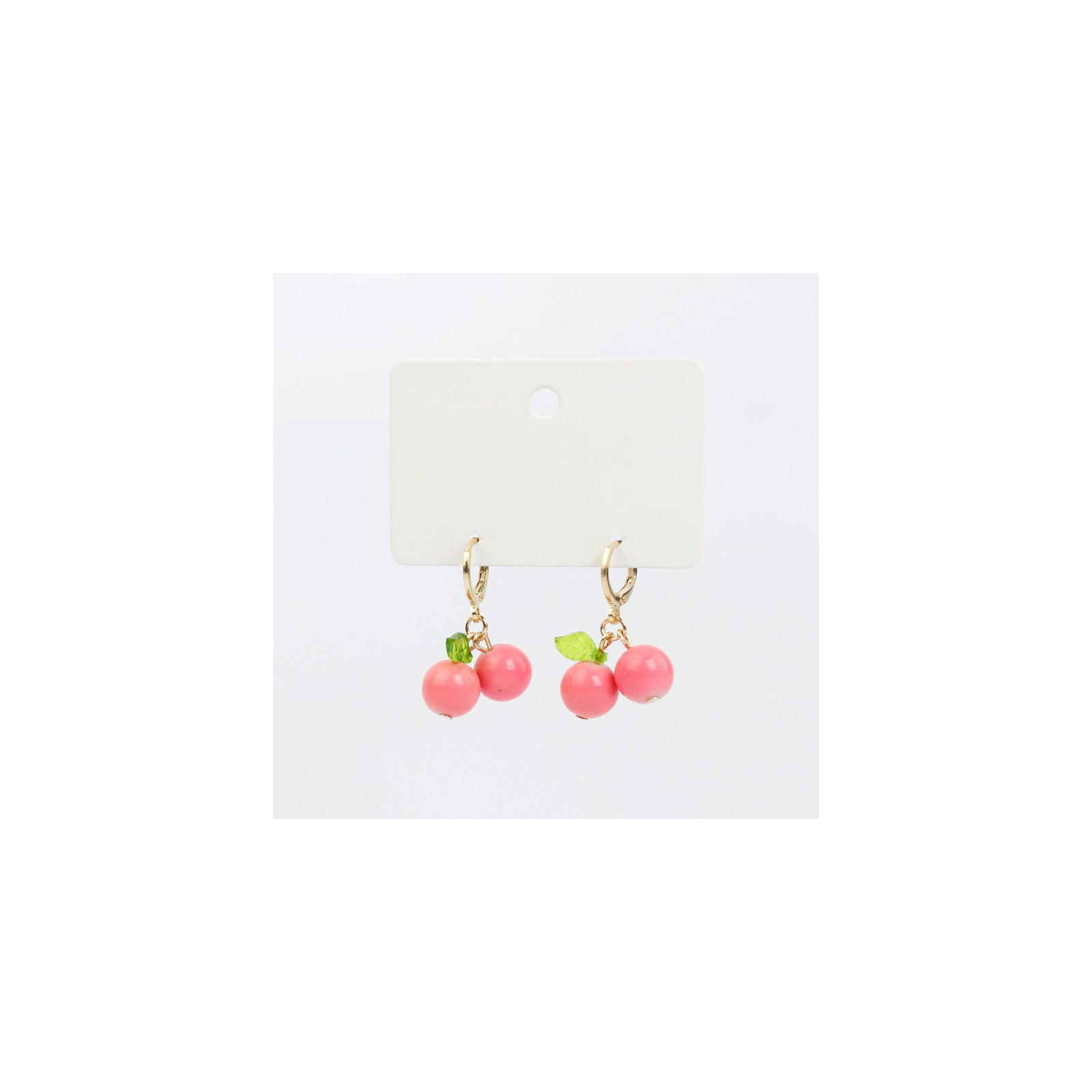 Aro argolla trendy con pieza de vidrio formando una cereza.