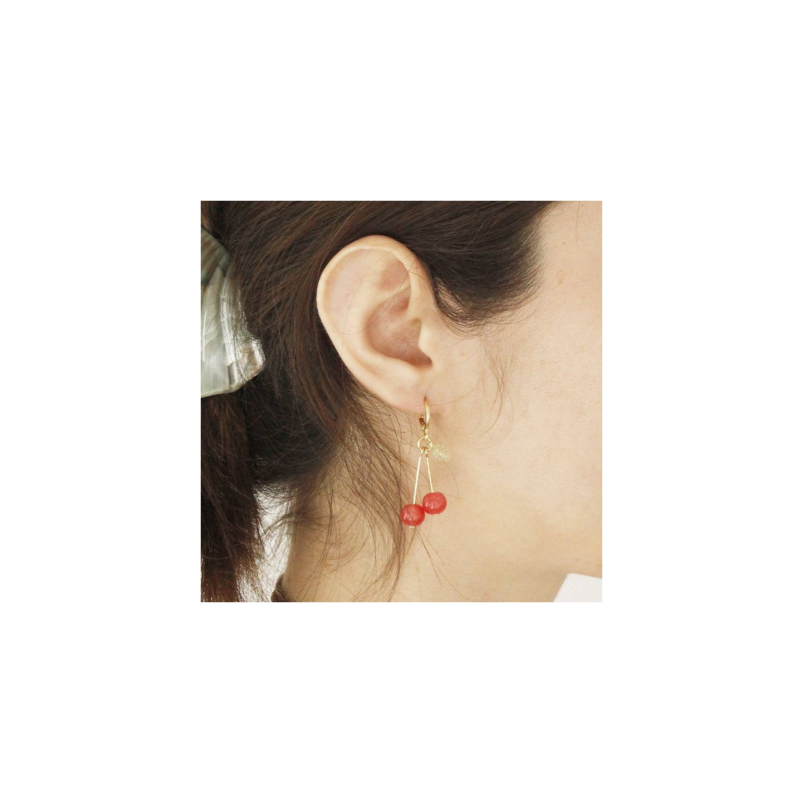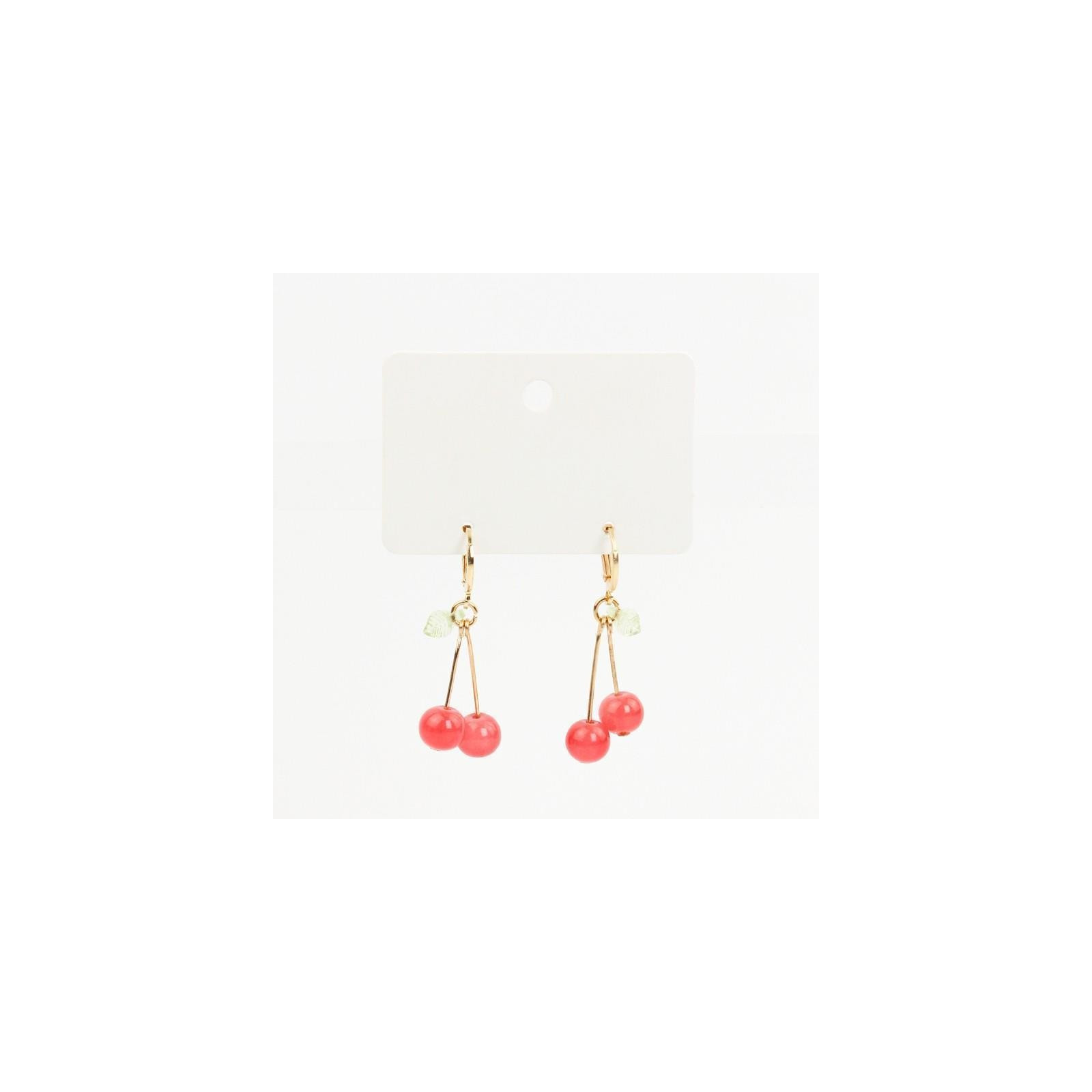 Aro argolla con dije exlcusivo en forma de cereza dorado.