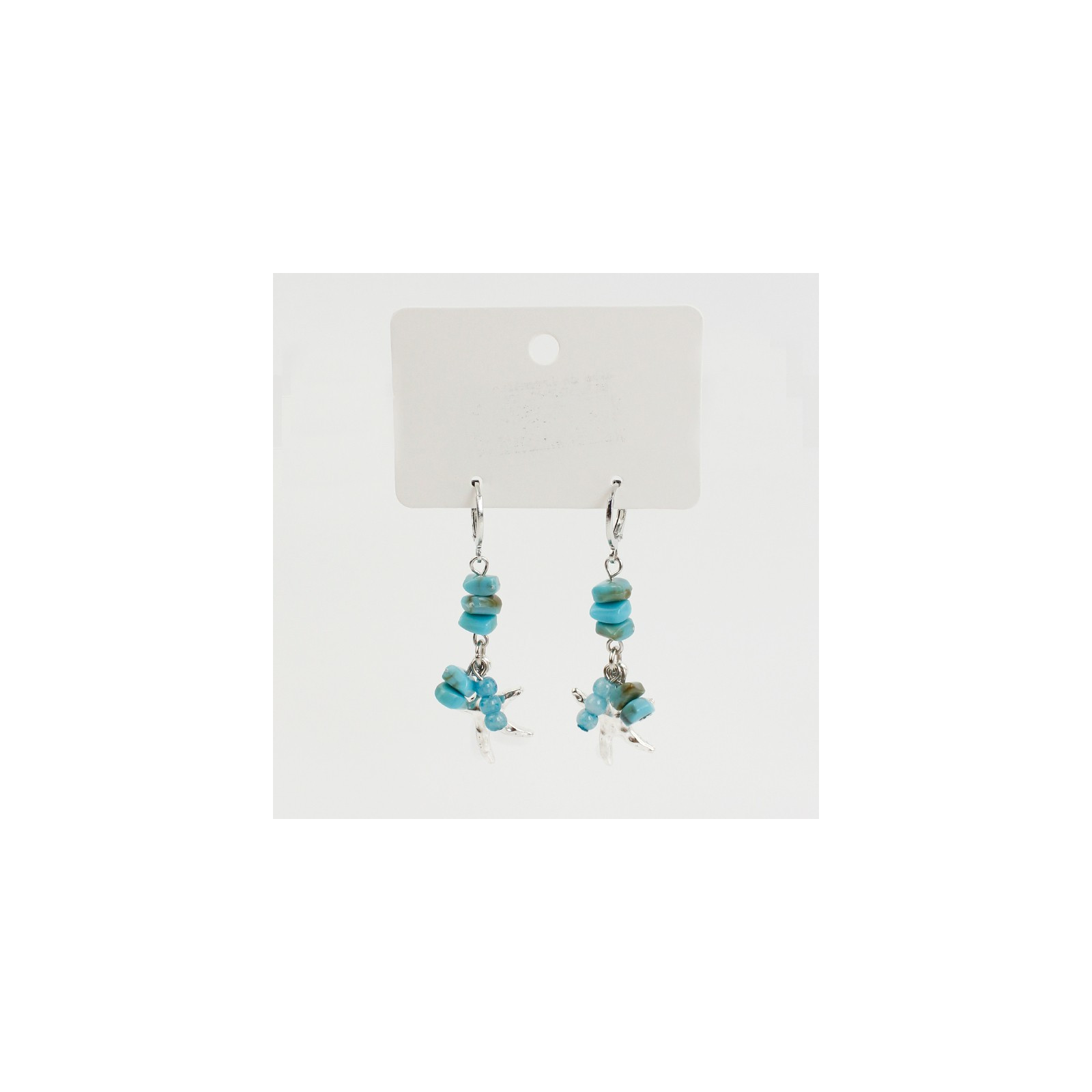 Aro de argolla con escallas de acrílico exclusivas, bolitas de vidrio y dije de fundición con forma de estrella de mar.
