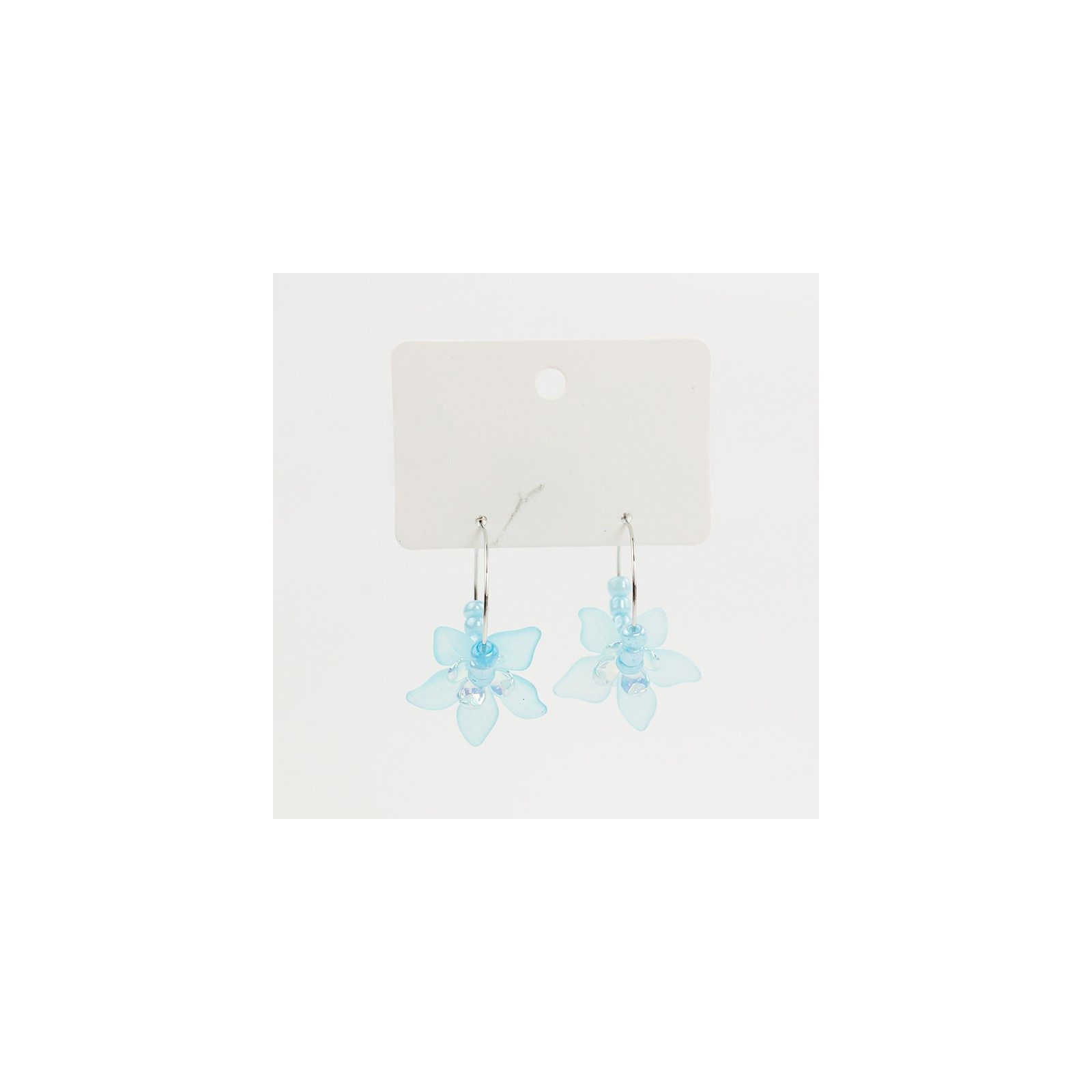 Aro de argolla exclusiva enhebrada con mostacillas diferenciadas y piezas de acrílicos con forma de flor.