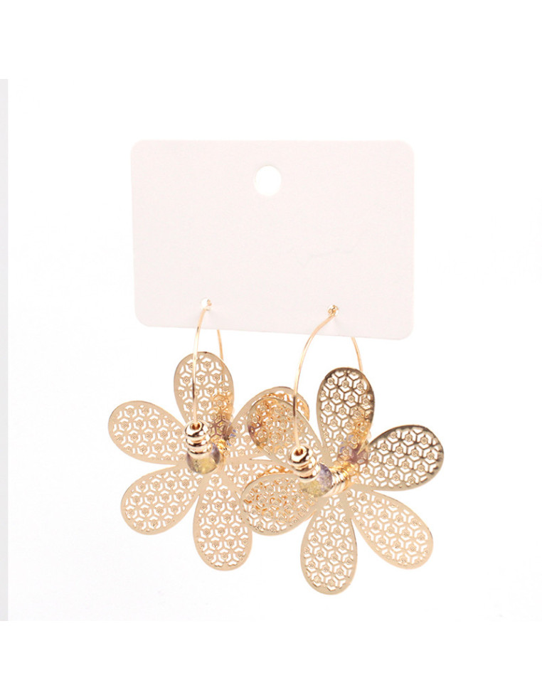 Aro de argolla exclusiva con pieza de metal con forma de flor filigranada y bolitas de vidrio.