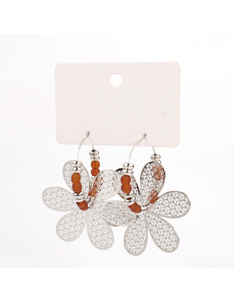 Aro de argolla exclusiva con pieza de metal con forma de flor filigranada y mostacillas.