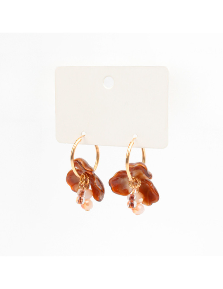 Aro de argolla con piezas de acrílico con forma de flor, rocas de cristal y mostacillas.