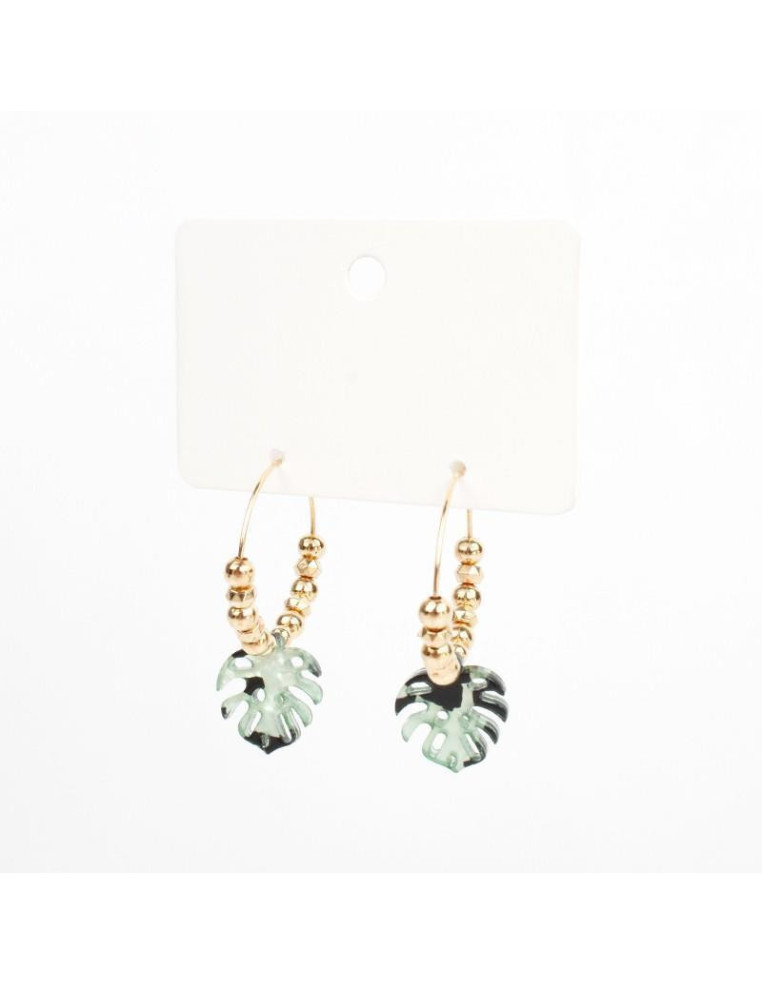 Aro de argolla, con piezas de acrílico con forma de flor y pasantes de CCB dorados.