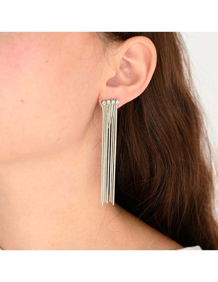 Aro Trendy de múltiple caída de cadena diferenciada con strass níquel.