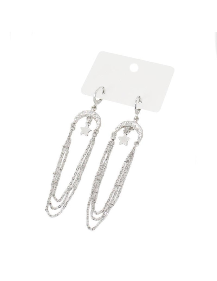 Aro Trendy de piezas exclusivas de strass con múltiple caída de cadena diferenciada níquel.