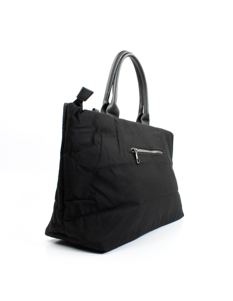 Bolso shopper efecto puffer. Asa fija y correa regulable de PU para bandolera. Base rígida. Forro interno. Bolsillo interno y bolsillo externo.