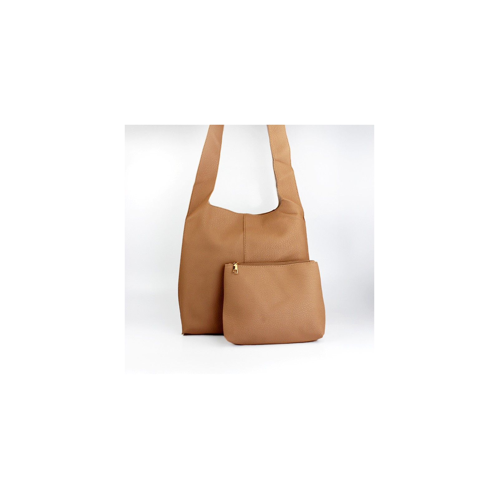 Cartera bolso de símil cuero. Asa fija regulable con nudo y cierre imantado. Con Neceser.