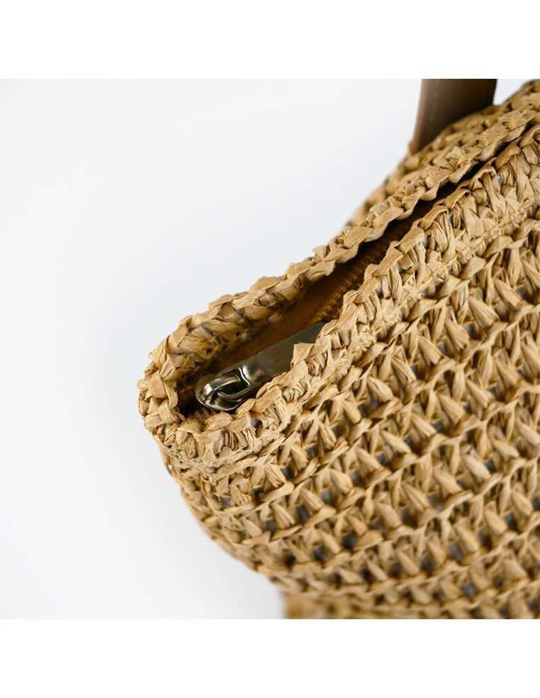 Bolso Shopper de rafia, con cierre y forro interno.