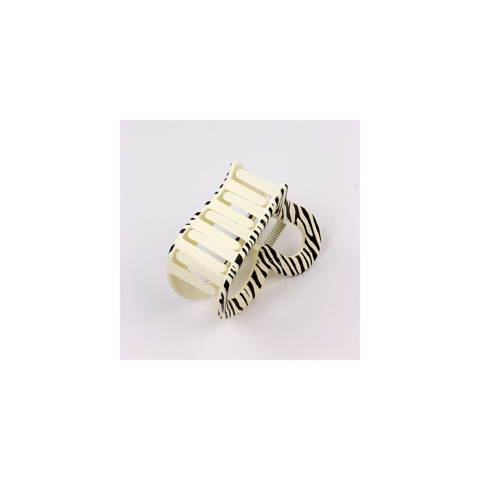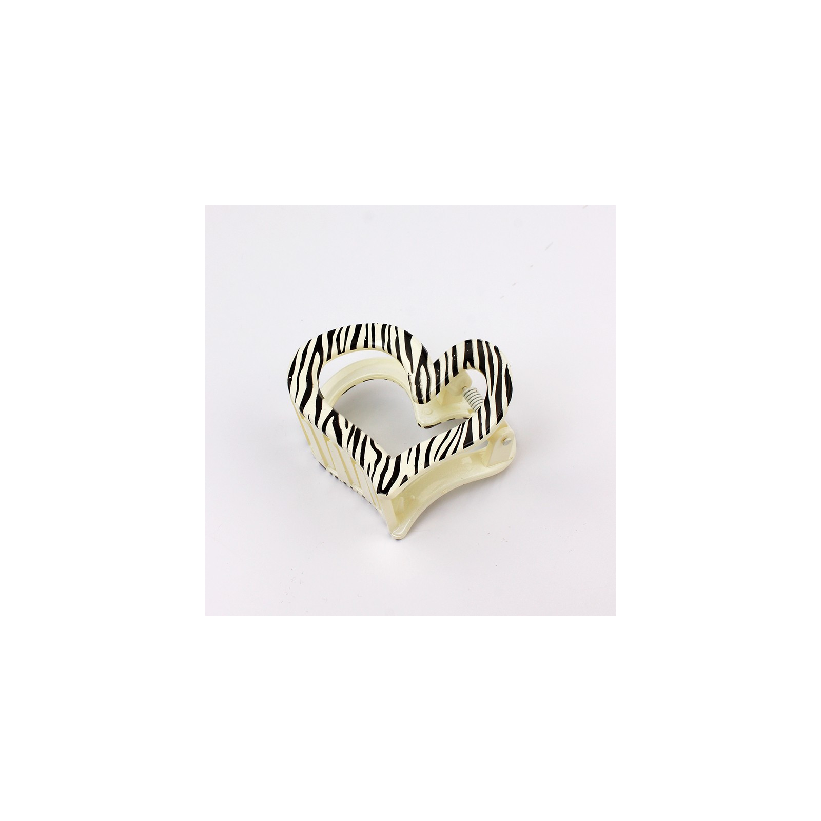 Broche de acrílico engomado para pelo con forma de corazón y rayas estilo cebra.