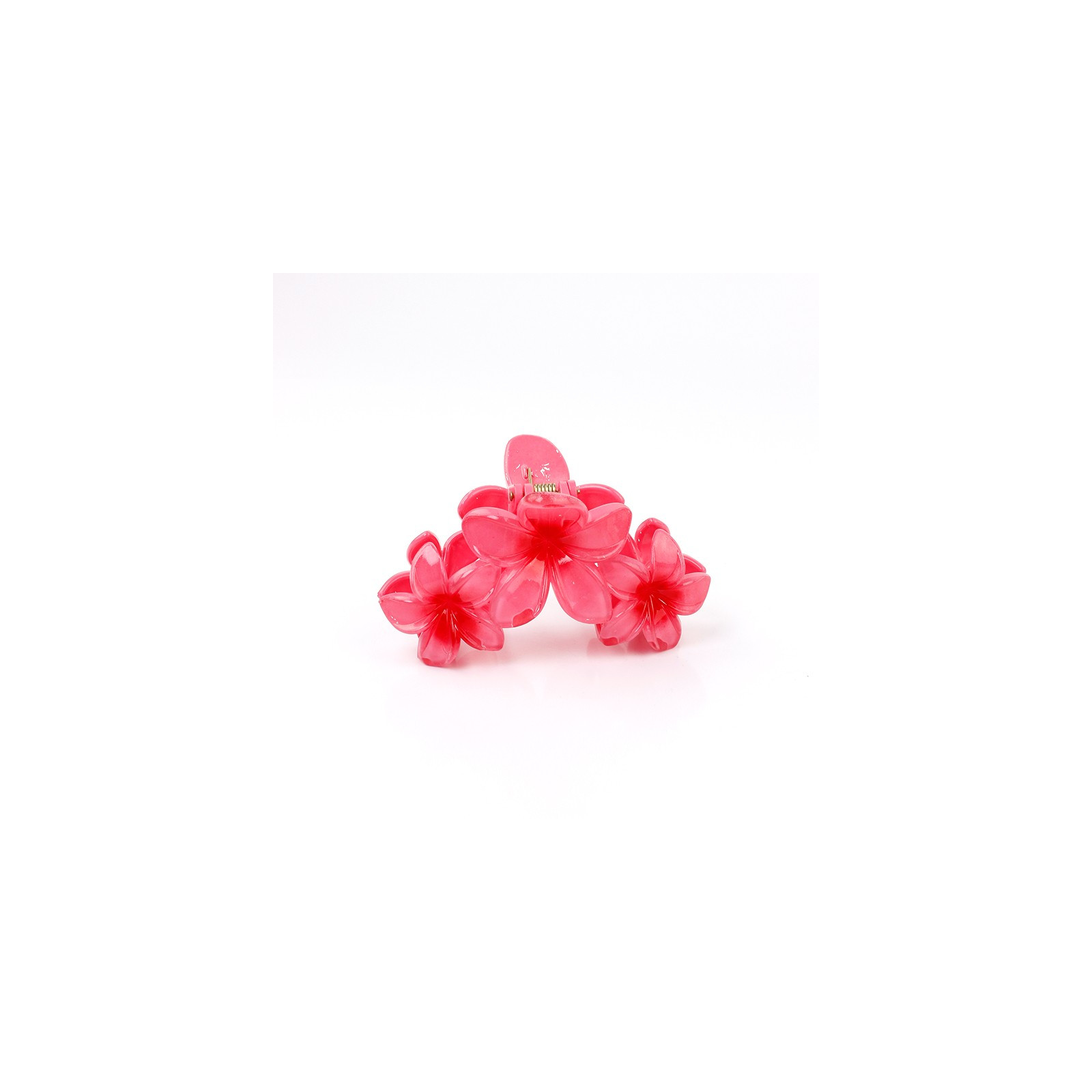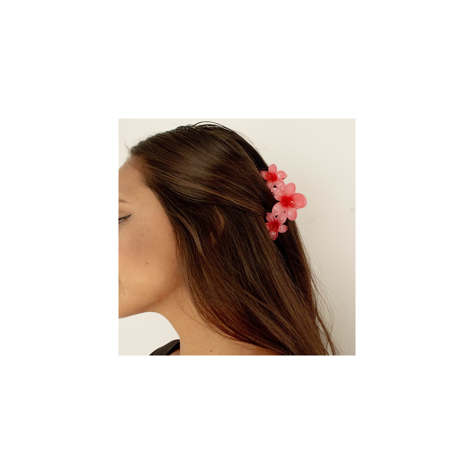 Broche para pelo de acrílico con forma de tres flores hawaianas.