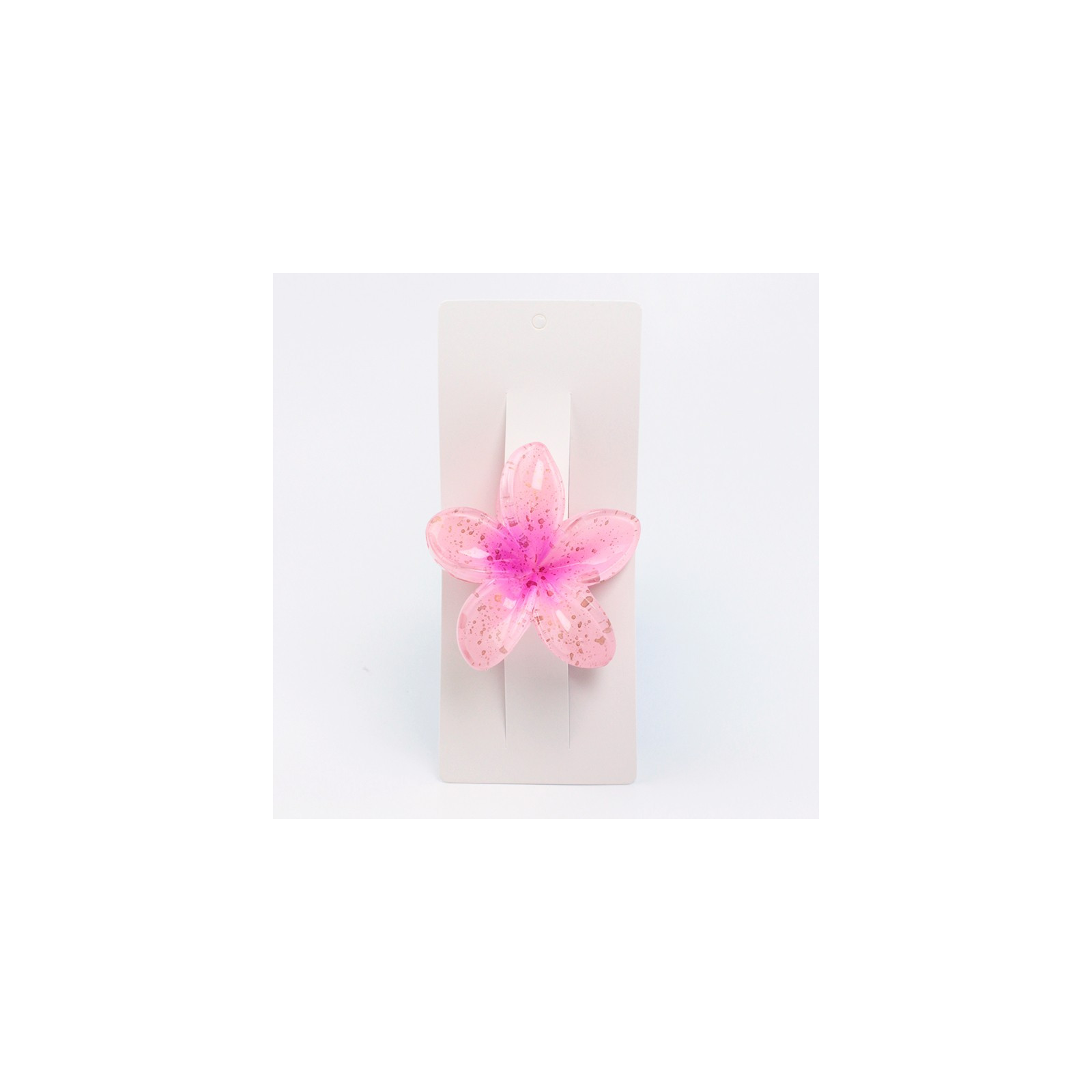 Broche de acrílico para pelo con forma de flor hawaiana con detalles dorados.