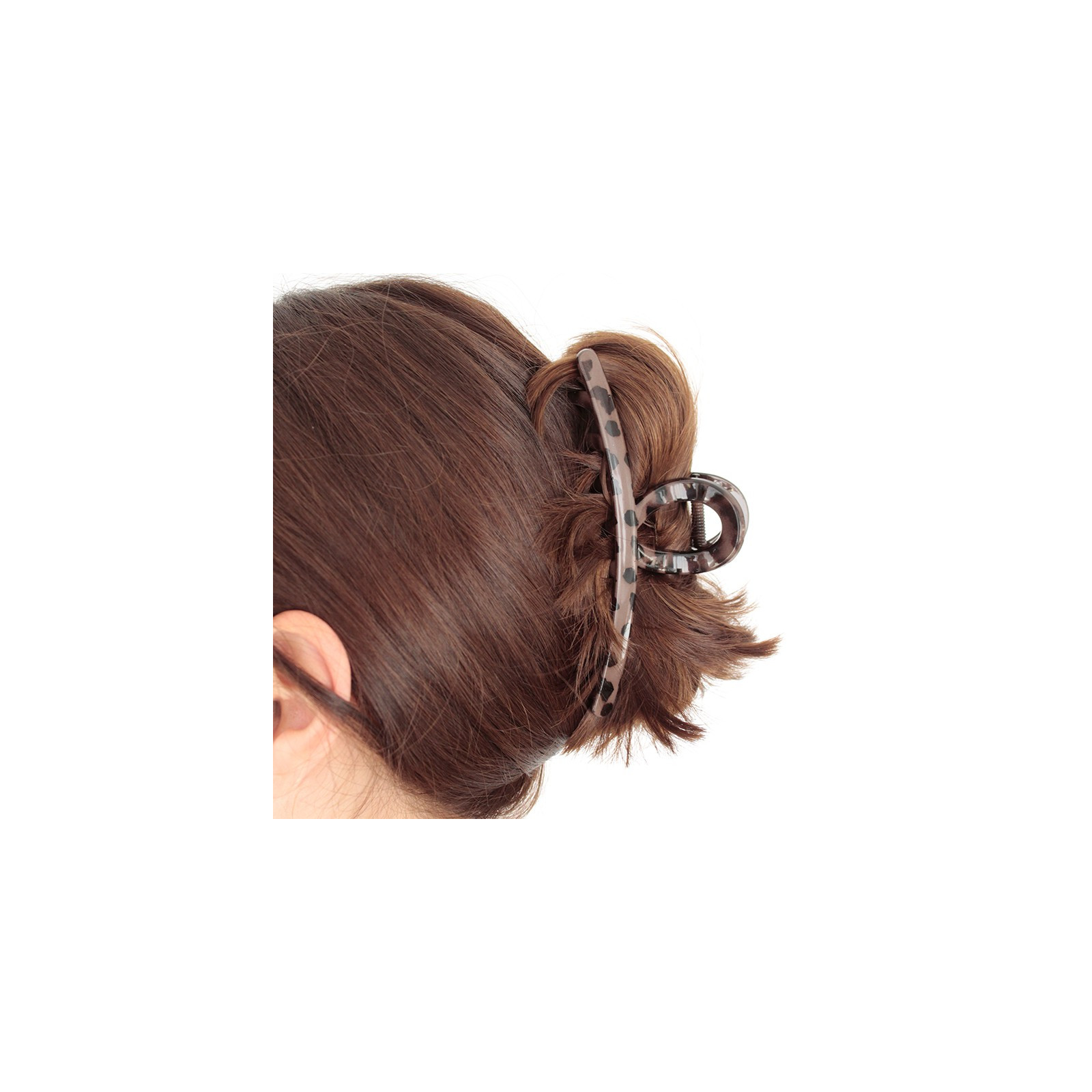 Broche de acrílico animal print para pelo con forma de nudo.
