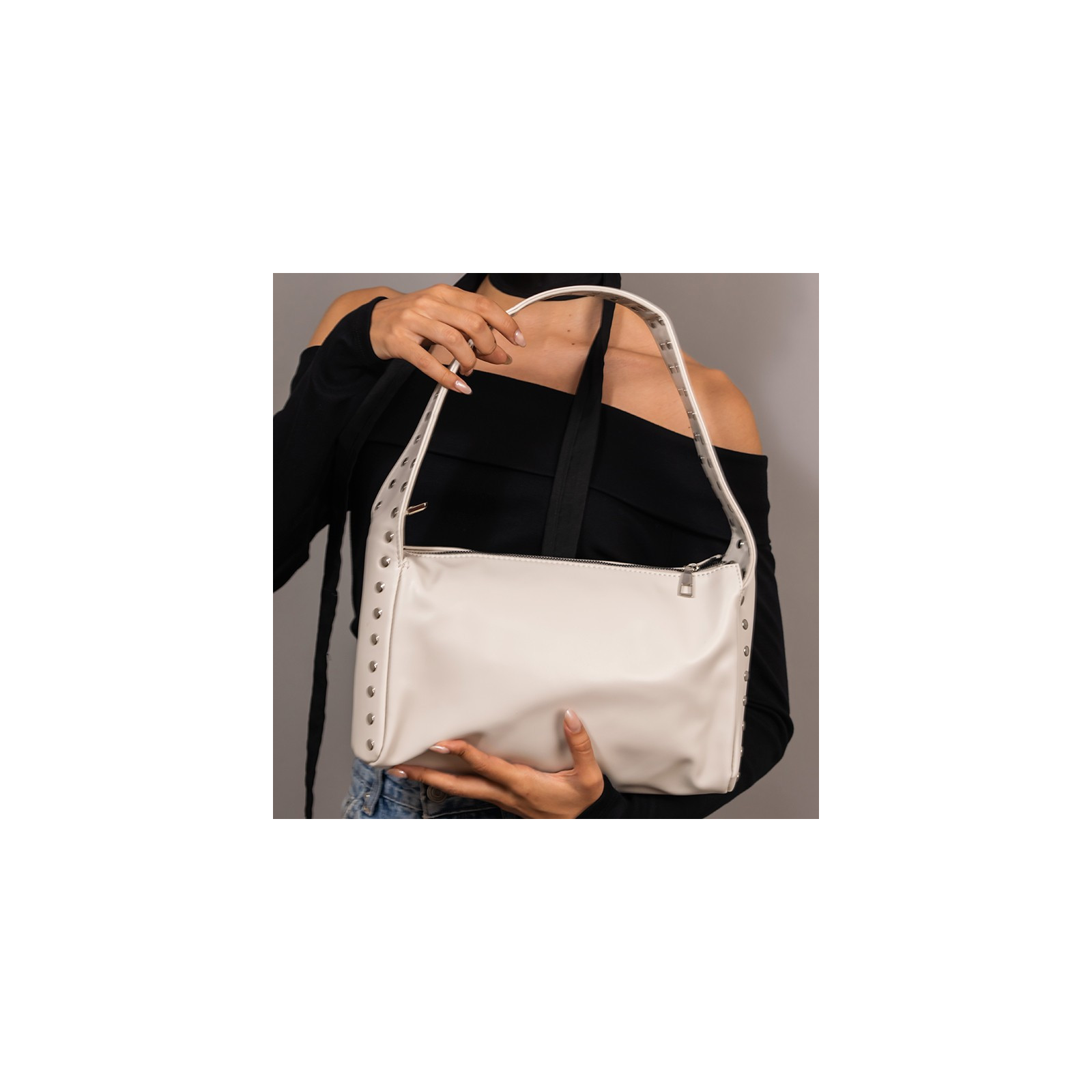 Bolso de hombre de símil cuero. Asa con diseño tachas.