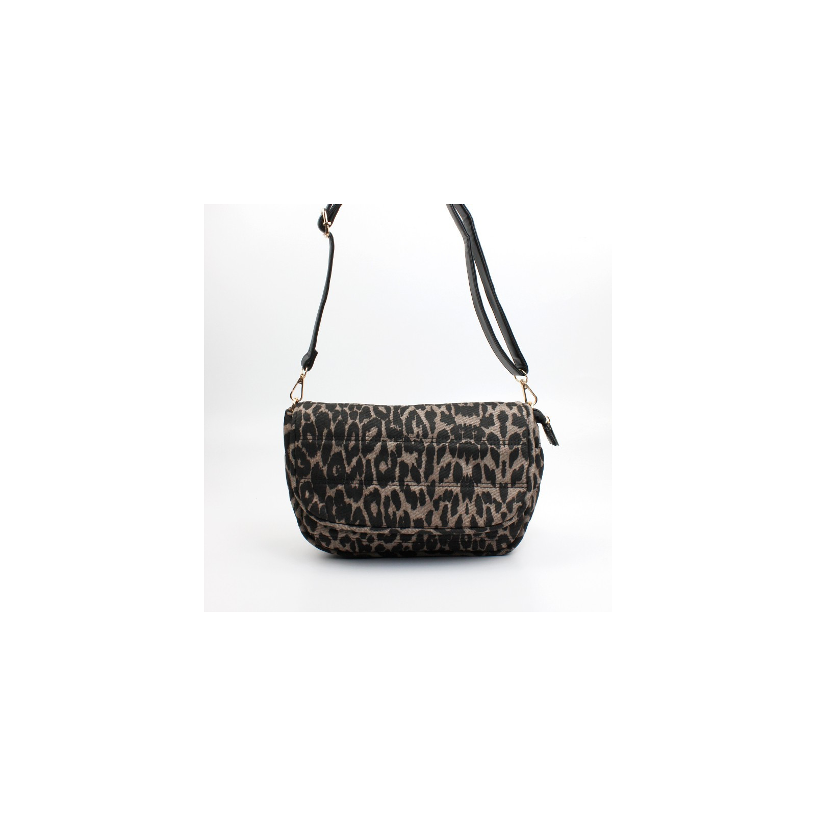 Cartera bandolera de tela gabardina con correa regulable desmontable de PU, cierre imantado y bolsillo interno.