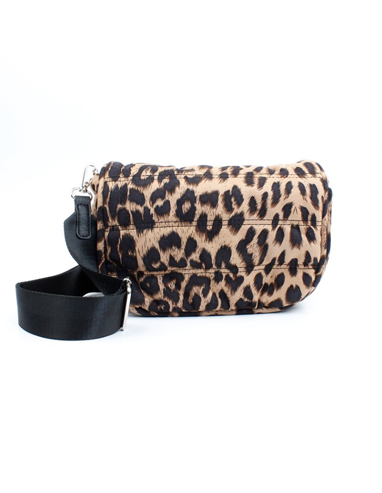 Cartera bandolera efecto puffer, con correa regulable desmontable, cierres imantados y bolsillo interno.