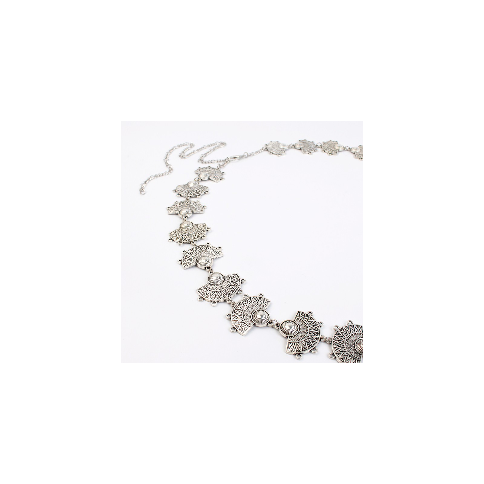 Cinturón de cadena diferenciada intervenida con piezas exclusivas de fundición níquel boho.