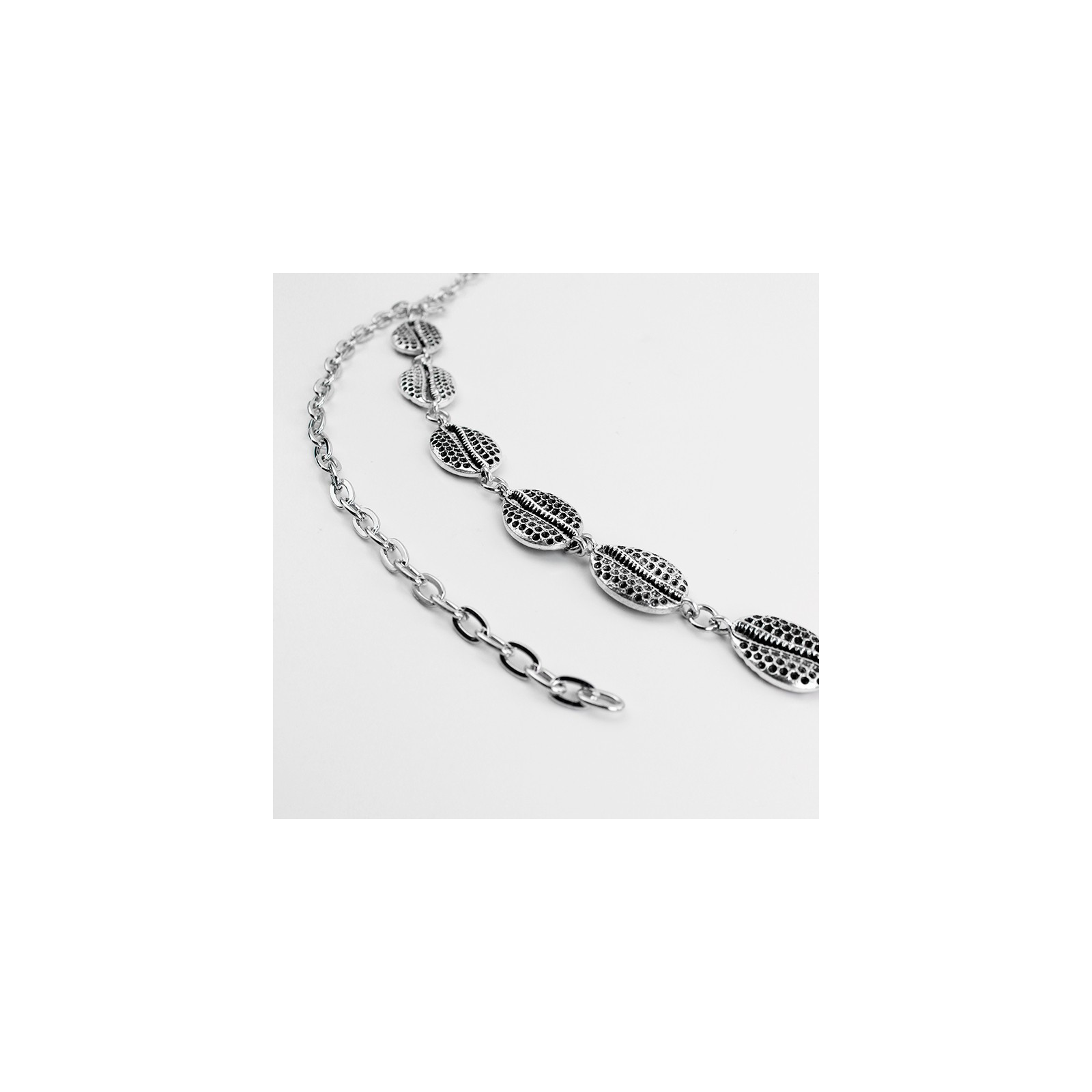 Cinturón de cadena diferenciada con dijes exclusivos de fundición con forma de buzios.