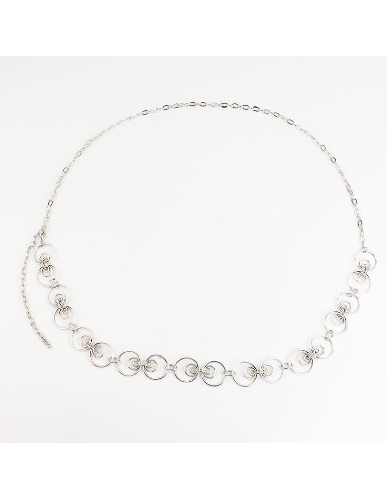 Cinturón de cadena diferenciada, con piezas exclusivas de fundición circulares.