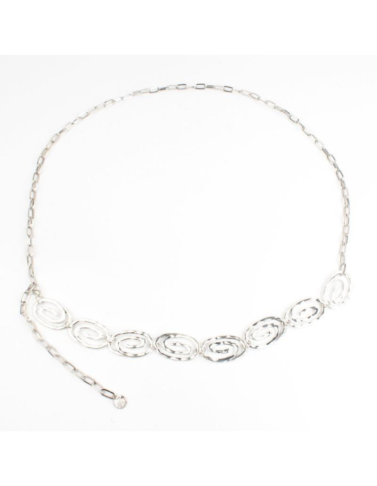 Cinturón de cadena diferenciada, con piezas exclusivas de fundición espirales.