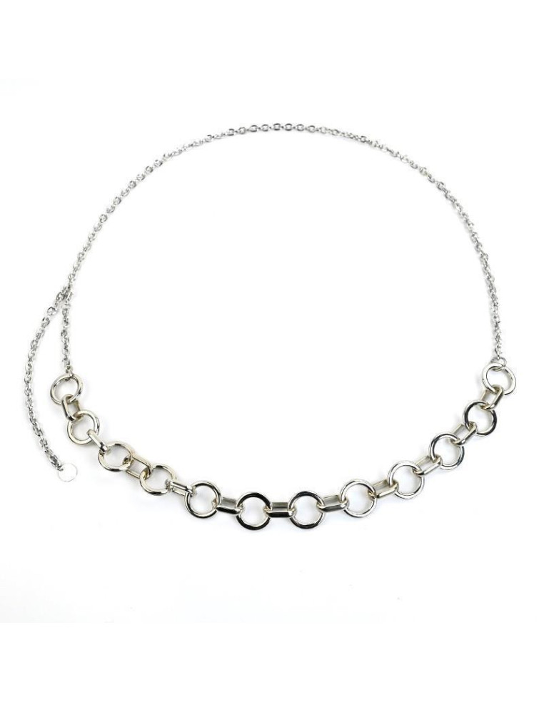 Cinturón de cadena diferenciada, con eslabones exclusivos de CCB. Medidas:39cm de largo y diámetro ajusttable con cadena de enganche de 60cm.