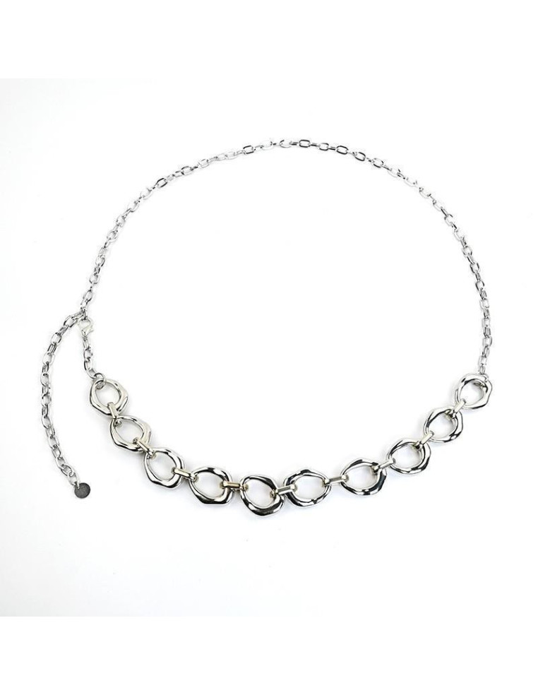 Cinturón de cadena diferenciada, con eslabones exclusivos de CCB orgánicos.Medidas: 38cm de largo y diámetro ajustable con cadena de enganche de 70cm.