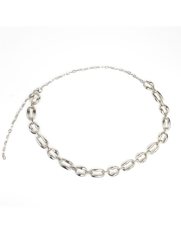 Cinturón de cadena, con piezas de CCB orgánicas. Medidas: 66cm de largo, ajustable con cadena de enganche de 50cm.