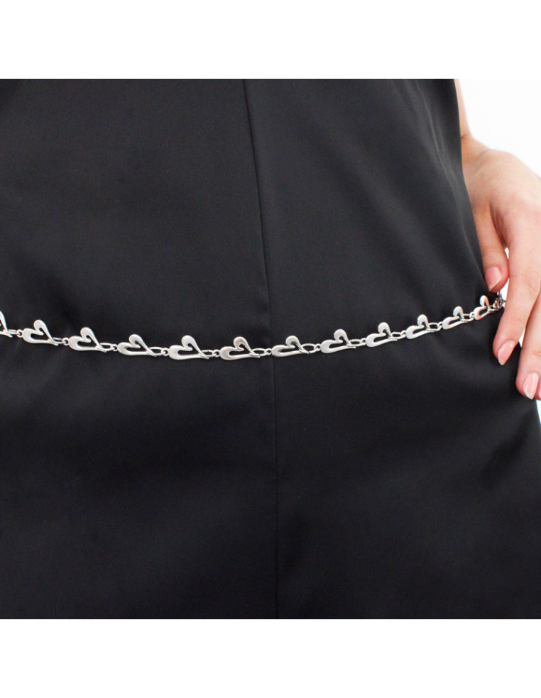 Cinturón de cadenas, con dijes en forma de corazón. Medidas: 44cm de largo, ajustable con cadena de enganche de 66cm.