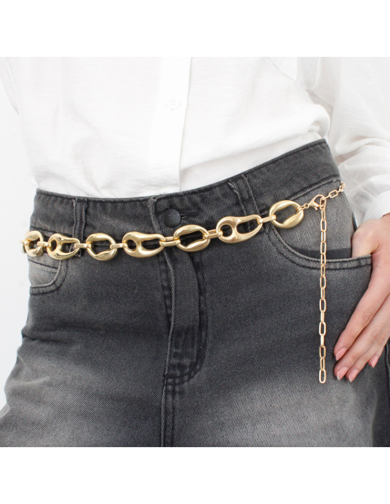 Cinturón de cadenas, con argollas y eslabones de CCB. Medidas:60cm de largo, ajustable con cadena de enganche de 40cm