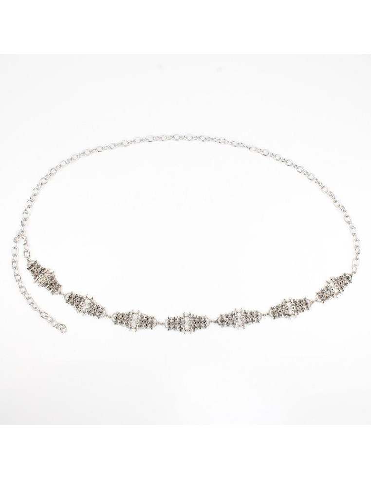 Cinturón de cadena y piezas de fundición boho.Medida: 44cm de largo, ajustable con cadena de enganche de 70cm.