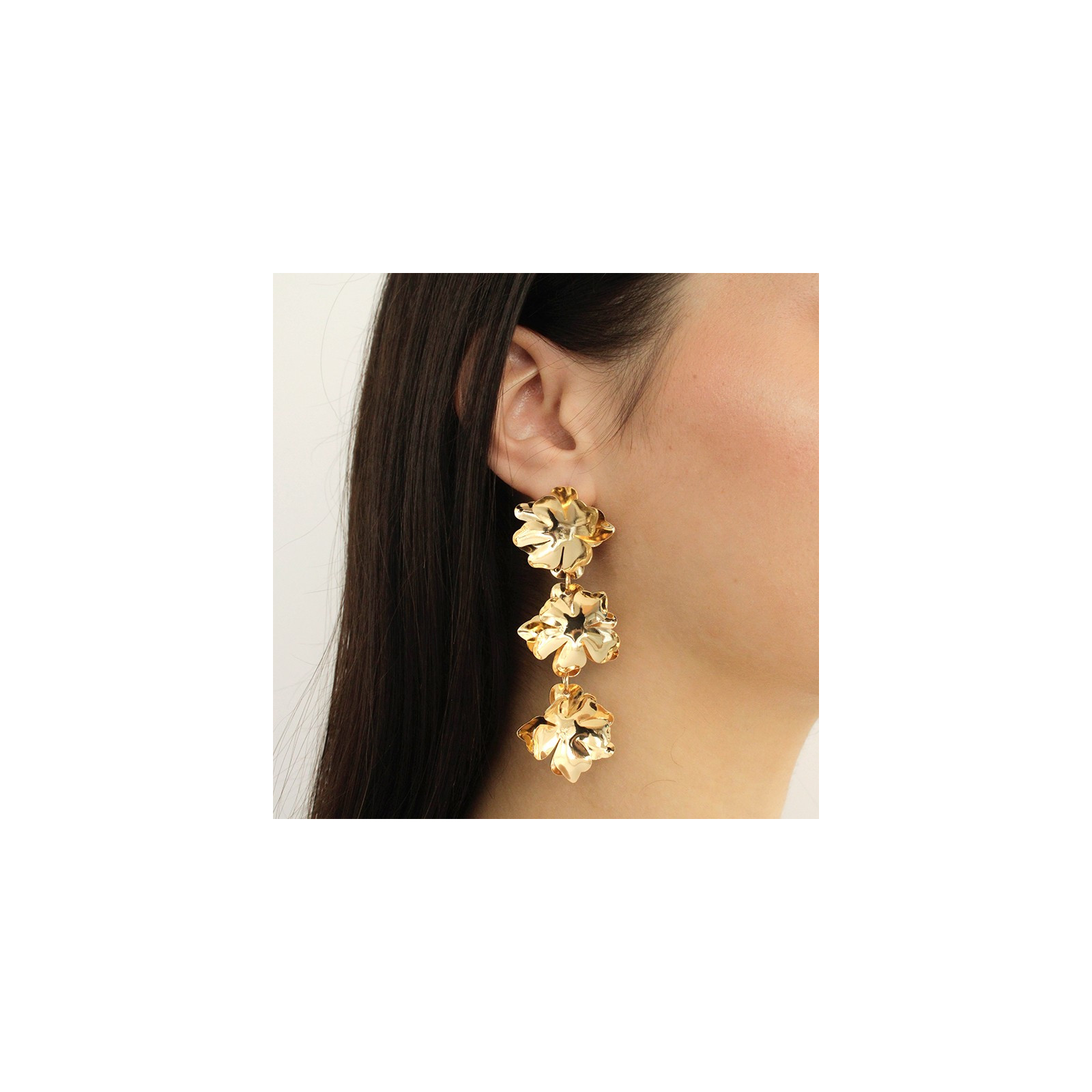 Aro Trendy de piezas exclusivas de chapa dorada con forma de flor.