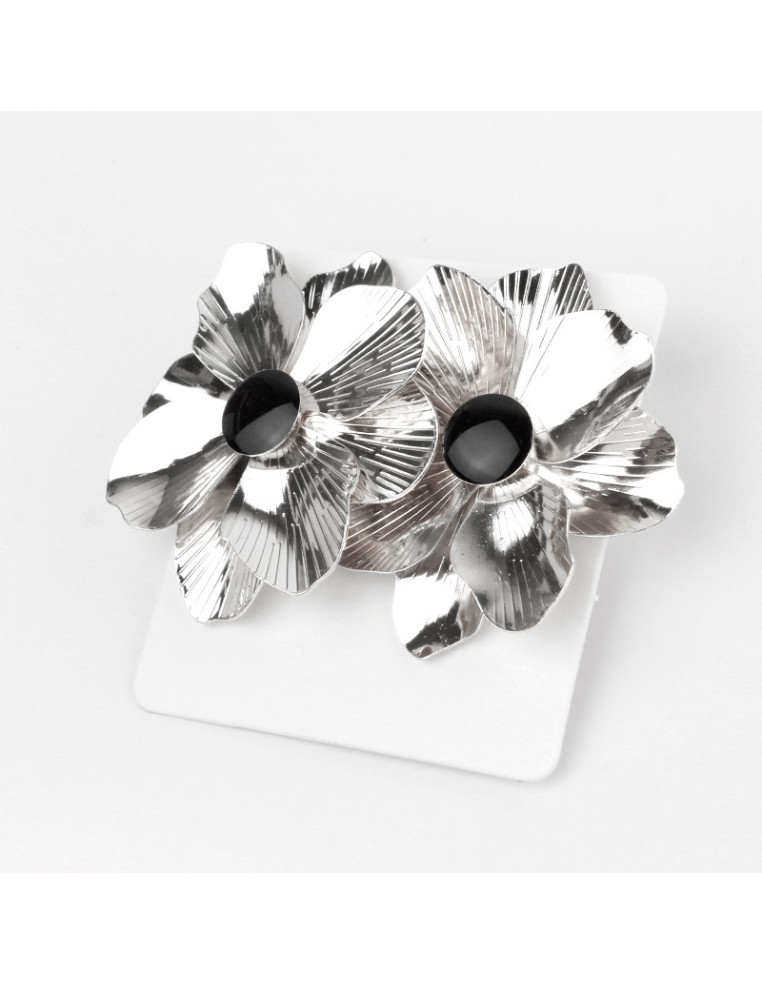 Aro trendy de piezas de metal exclusivas con forma de flor.