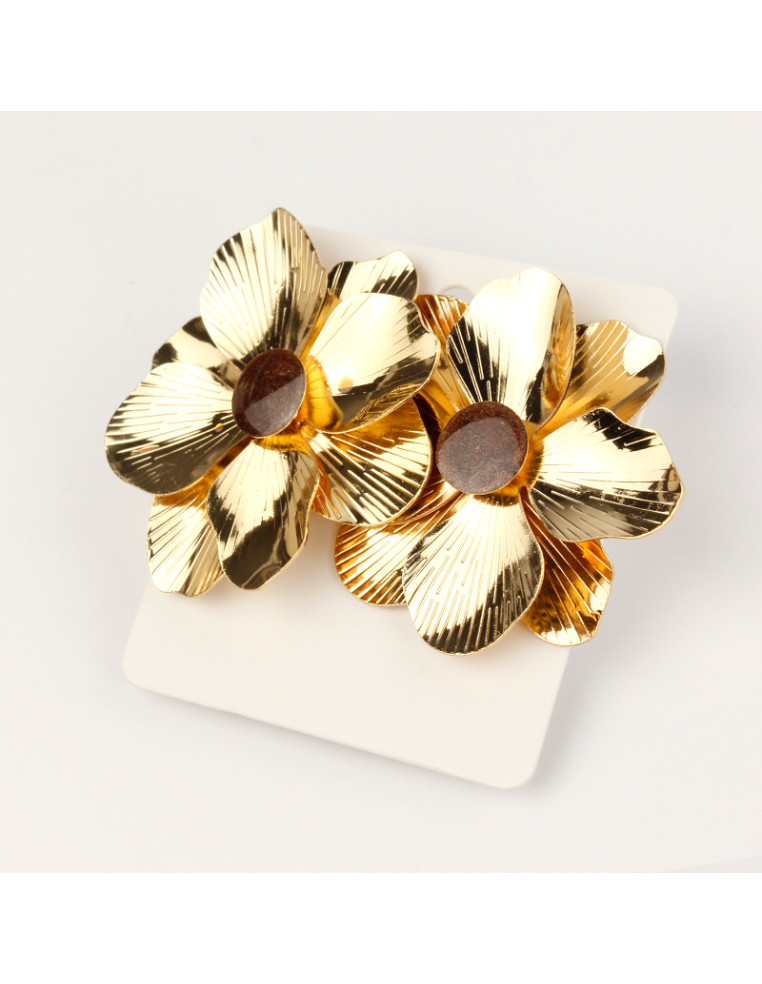 Aro trendy de piezas de metal exclusivas con forma de flor.