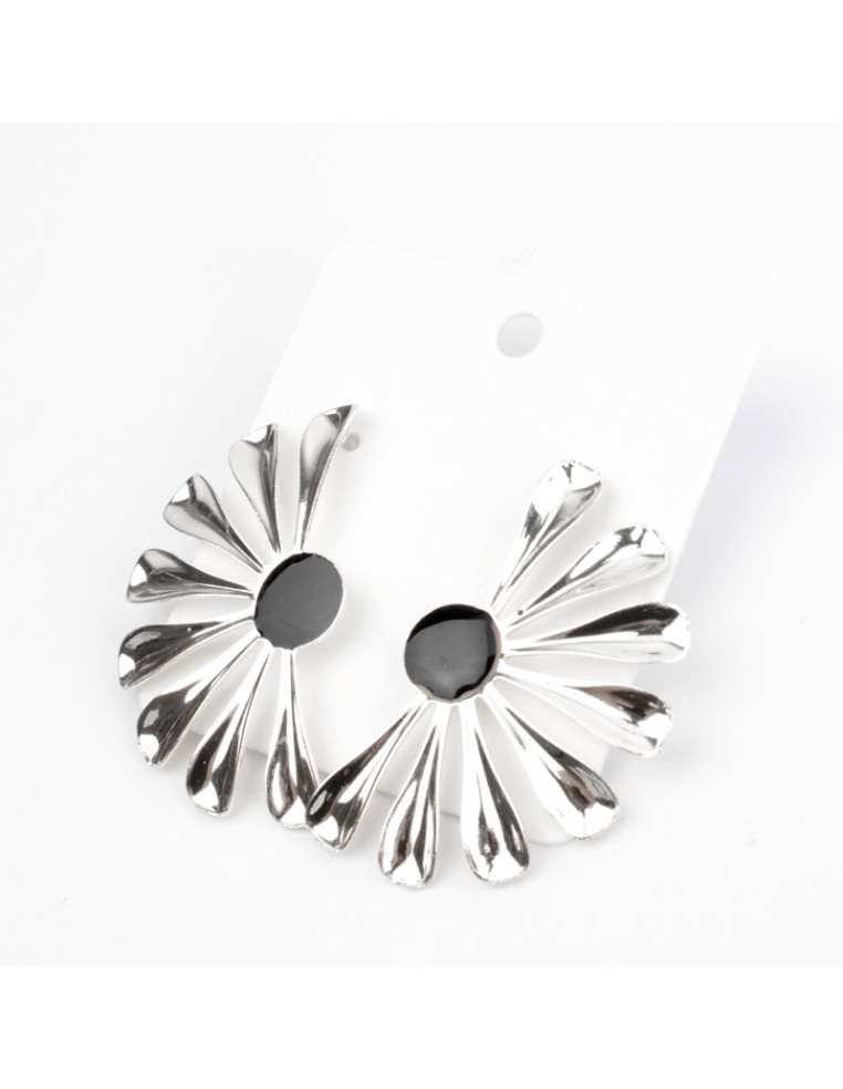 Aro trendy de piezas de metal exclusivas con forma de flor.