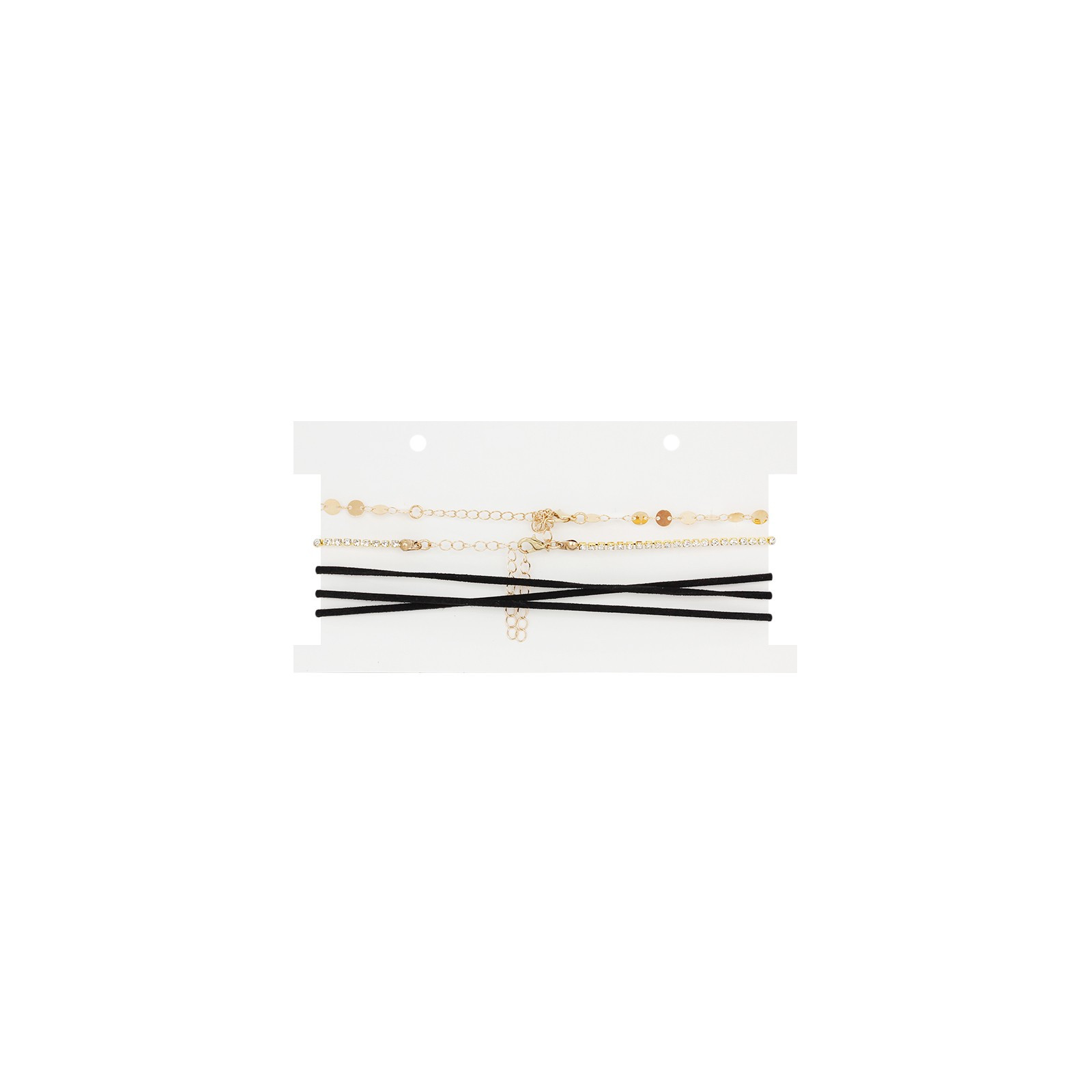 Set de tres choker de gamuza con cadenas diferenciadas de strass dorado.