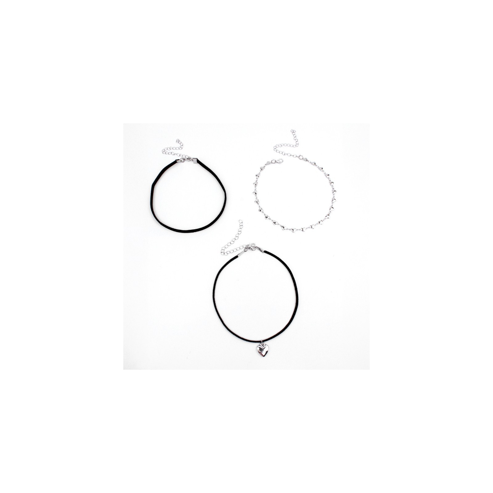 Set de tres choker de gamuza y de cadenas diferenciadas con dije exclusivo níquel.