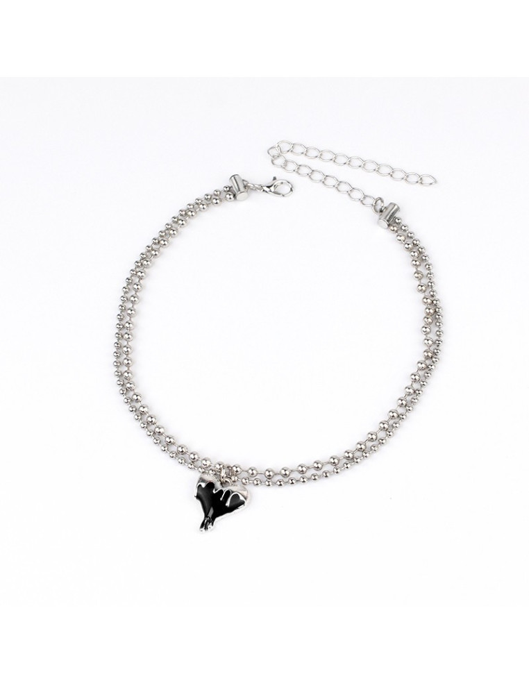 Choker de doble cadena diferenciada con dije exclusivo con forma de corazón, pintado a mano.