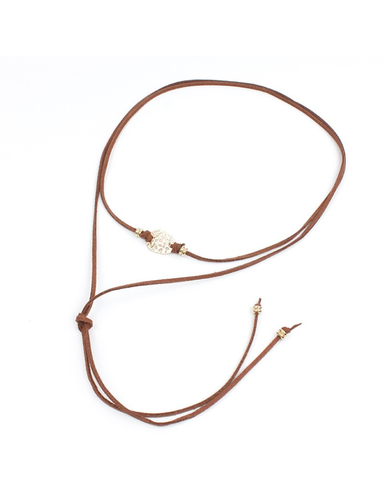 Chocker de gamuza de múltiples vueltas con dije exclusivo dorado y piezas pasantes.