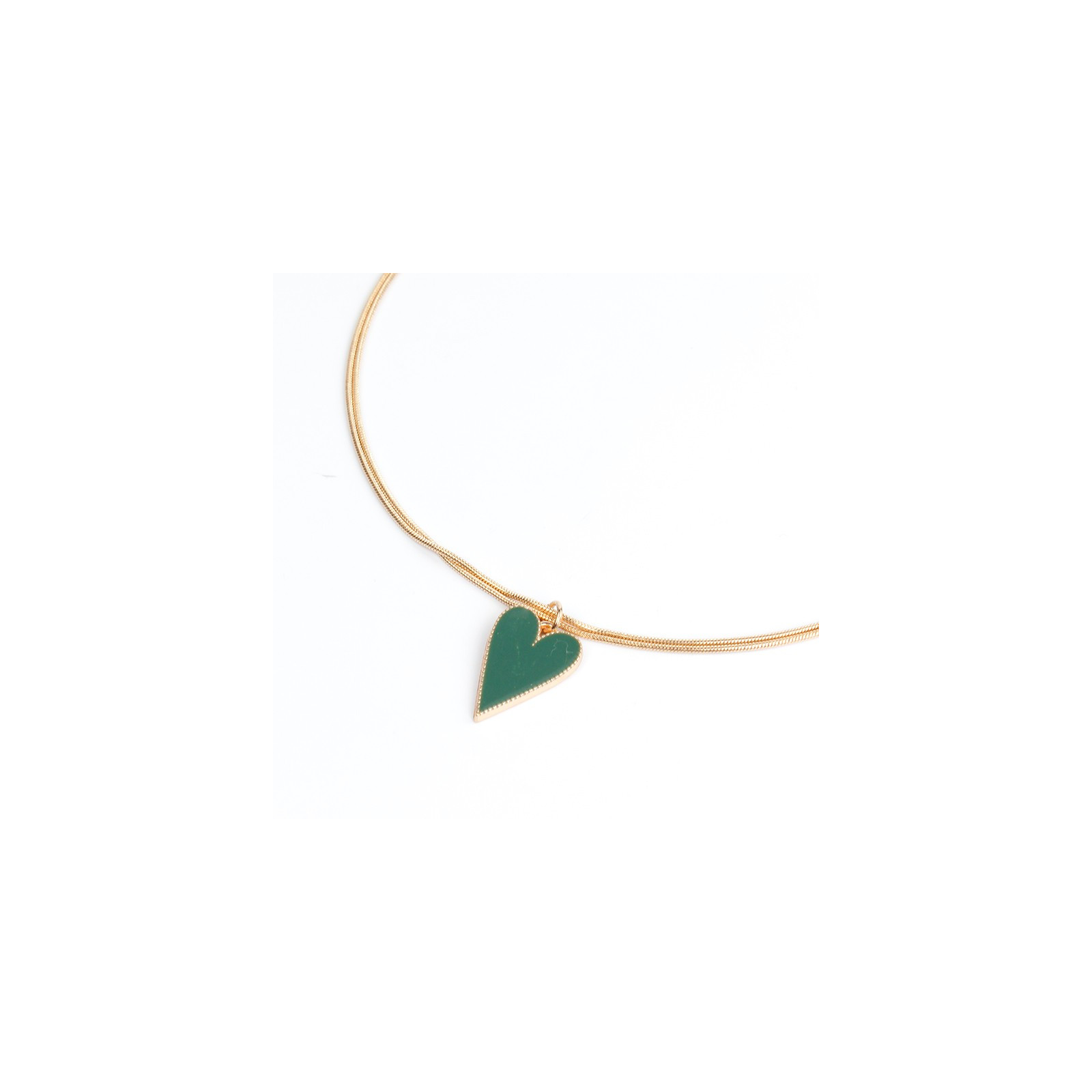 Chocker de doble cadena diferenciada con dije exclusivo pintado a mano con forma de corazón.