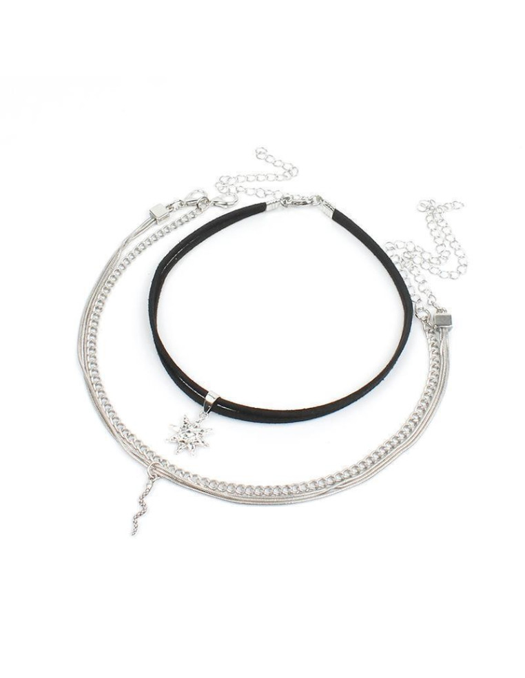 Set de tres chockers, uno de ellos de gamuza con dije exclusivo con forma de sol, los dos restantes elaborados en cadenas diferenciadas, de triple cadena acompañado de dije con forma de serpiente.