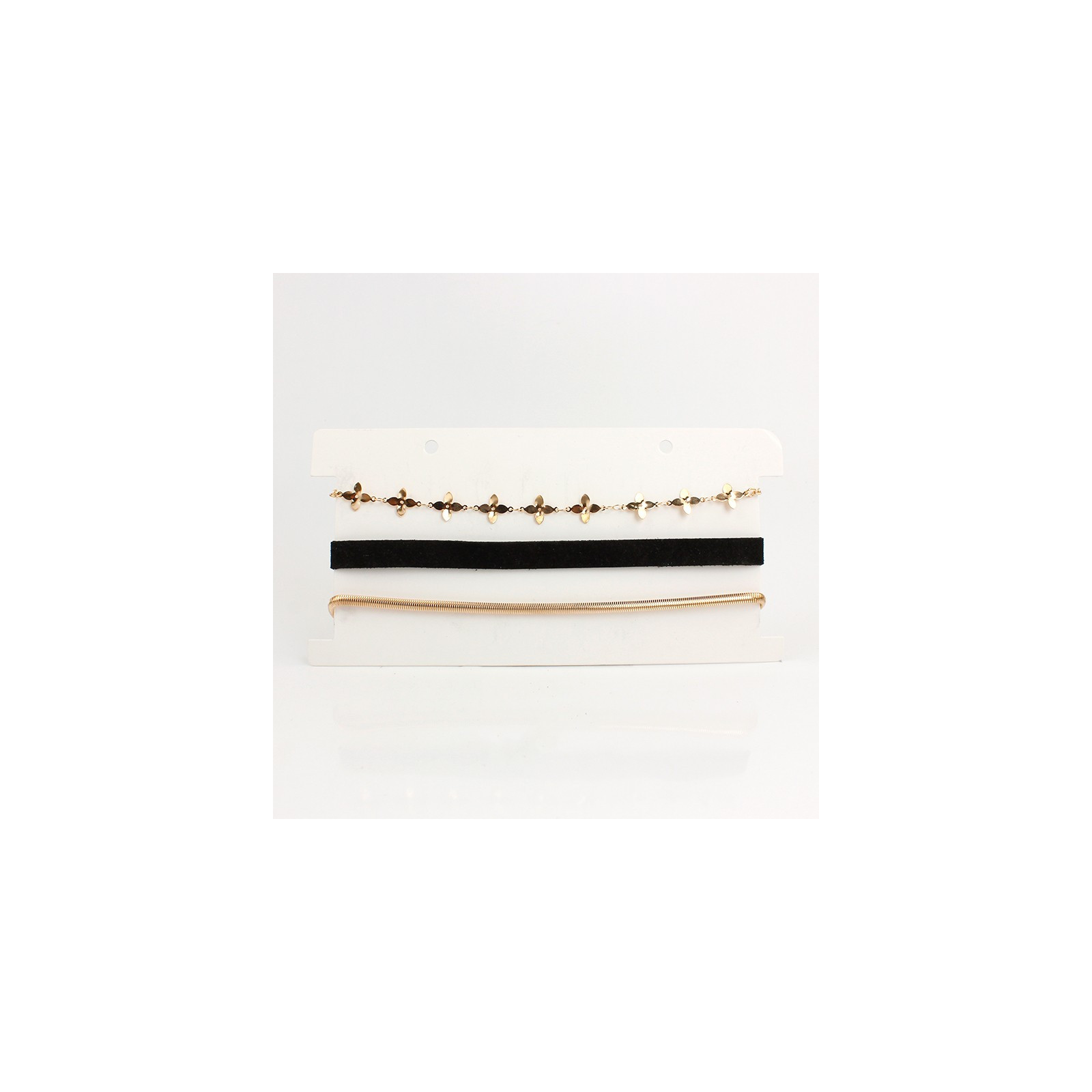 Set de tres chrokers, uno de gamuza, dos de cadenas diferenciadas.