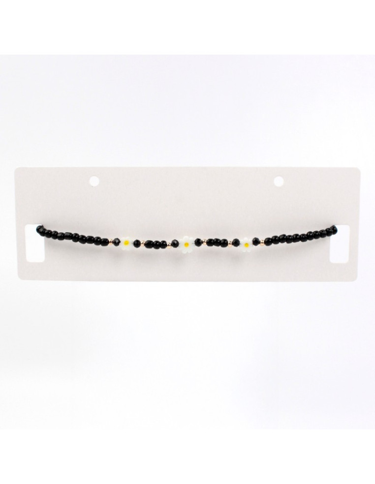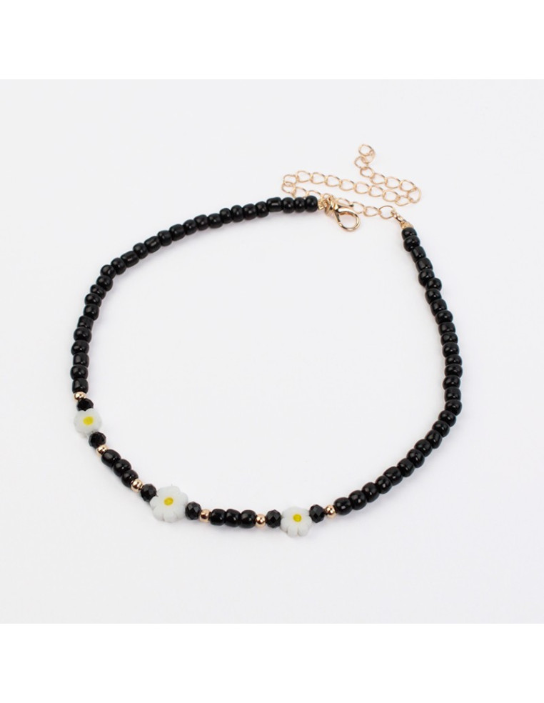 Chocker flexible de mostacillas con dijes pasantes de vidrio con forma de margaritas.