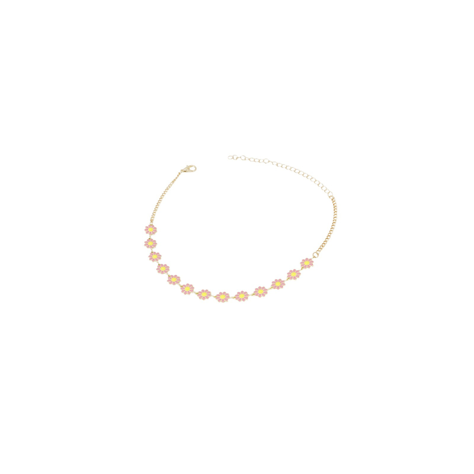 Chocker de cadena diferenciada con múltiples flores pintadas a mano doradas.