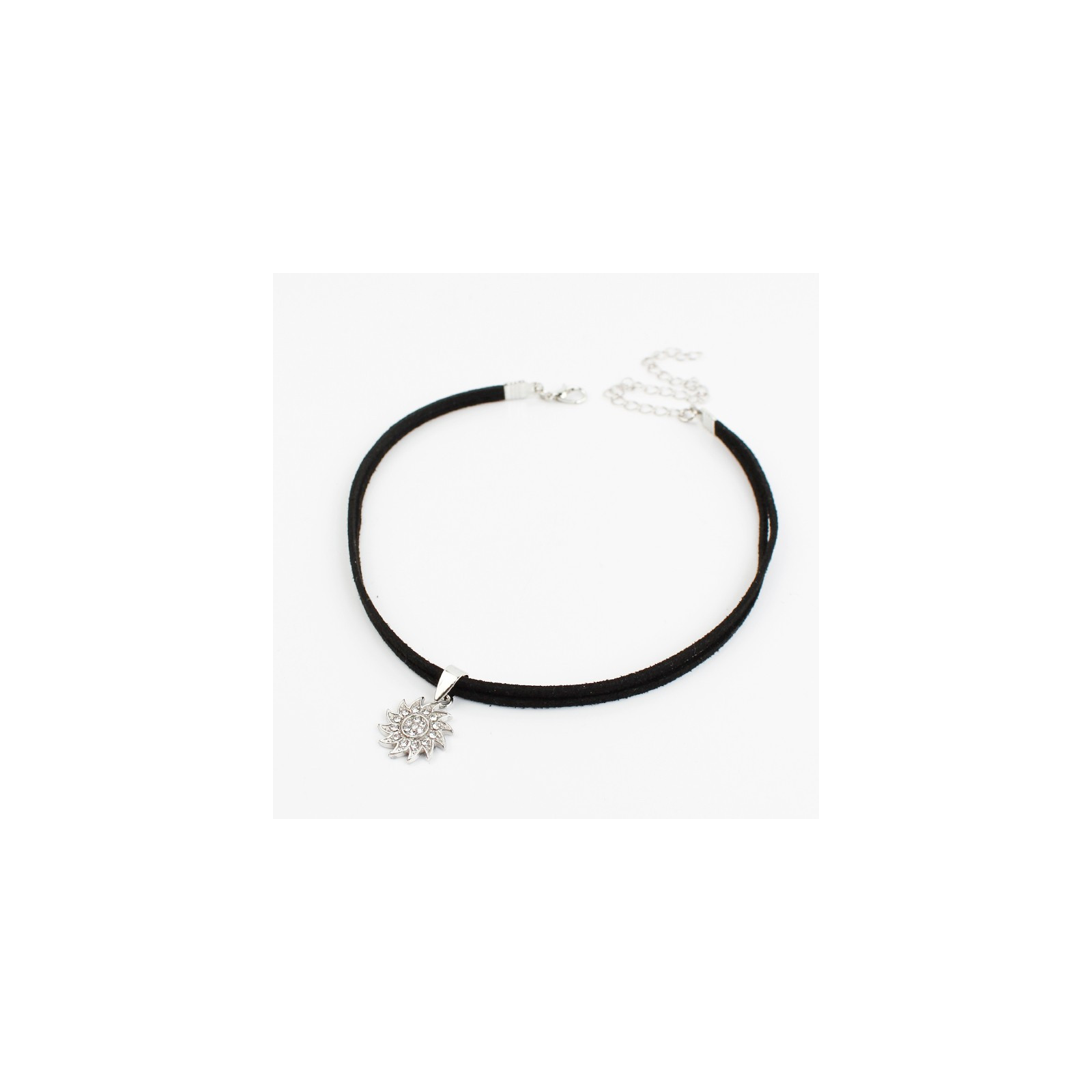 Choker de gamuza con dije exclusivo de strass en forma de sol.