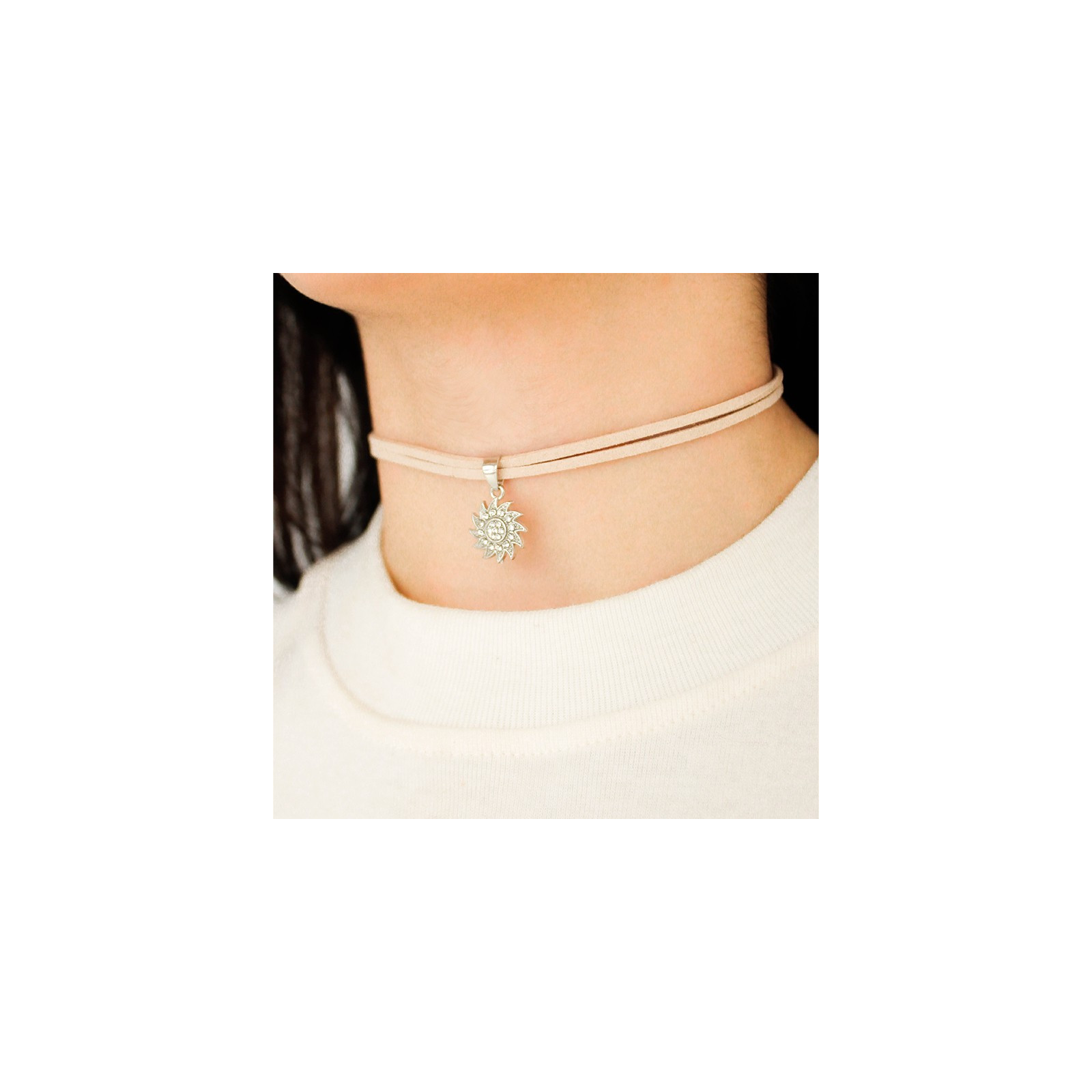 Choker de gamuza con dije exclusivo de strass en forma de sol.