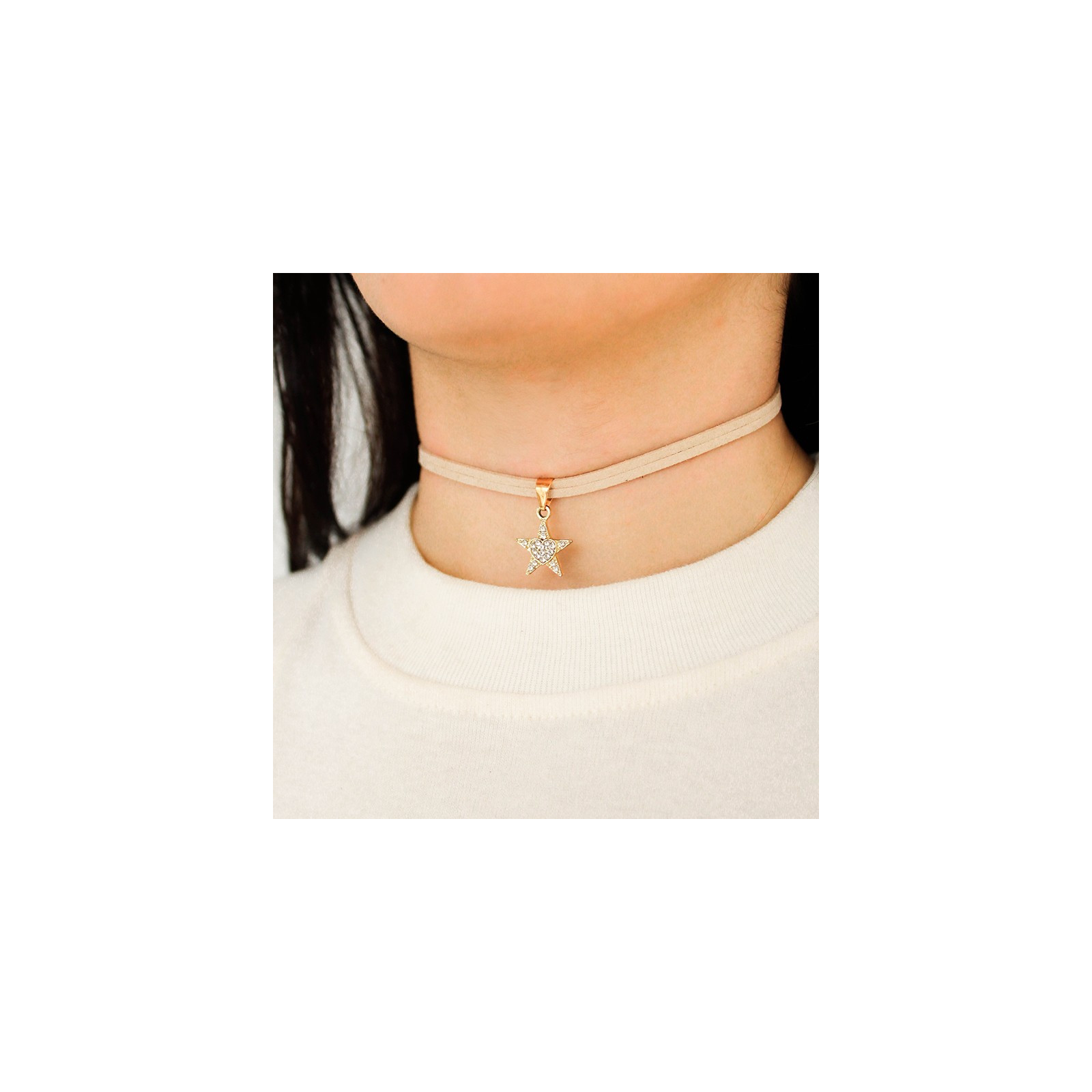 Choker de gamuza doble intervenido con dije exclusivo de strass en forma de estrella.
