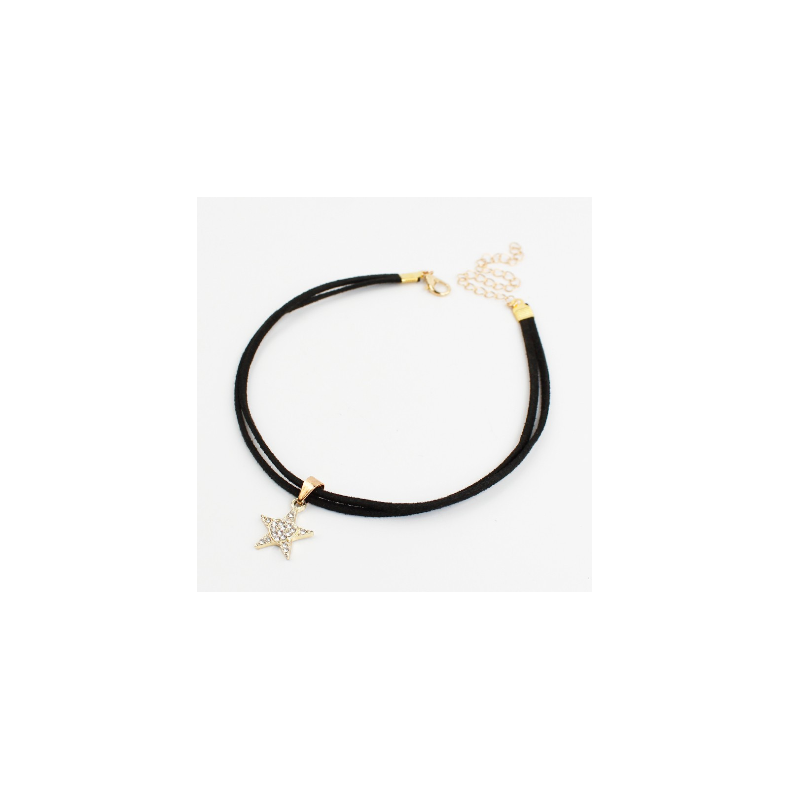 Choker de gamuza doble intervenido con dije exclusivo de strass en forma de estrella.