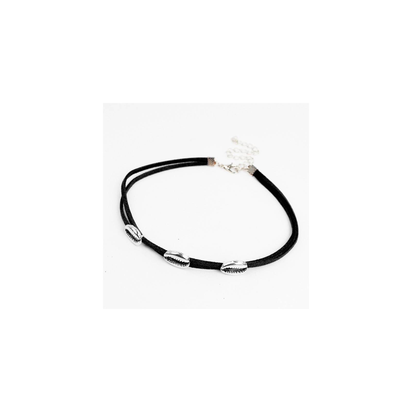 Chocker de doble gamuza con buzios pasantes exclusivos de fundición.