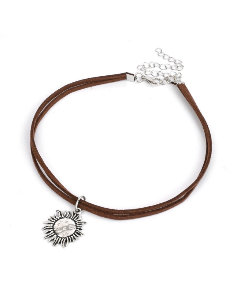 Chocker de doble gamuza con dije exclusivo de fundición con forma de girasol.